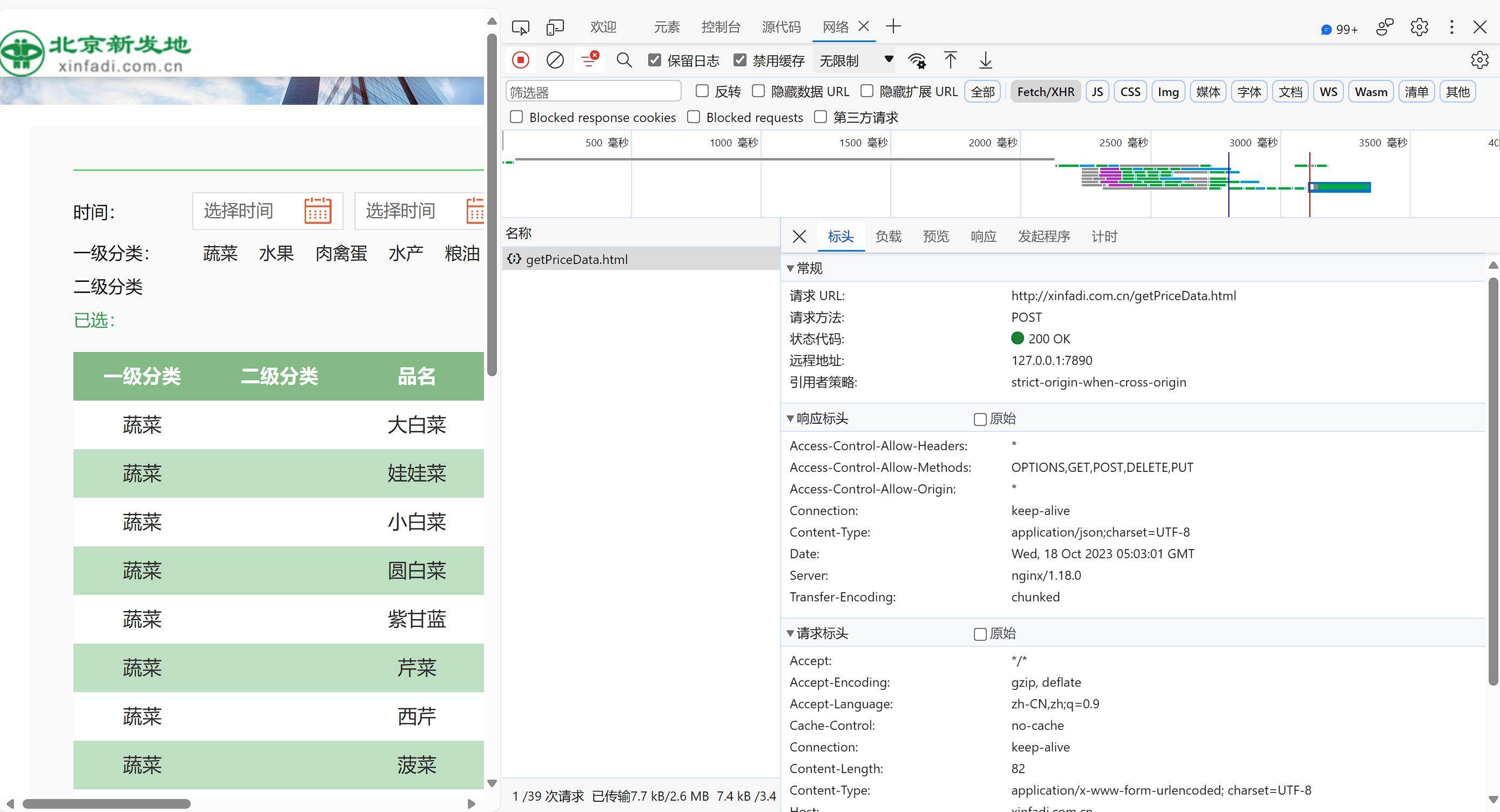 可以看到他的请求url是 http://xinfadi.com.cn/getPriceData.html